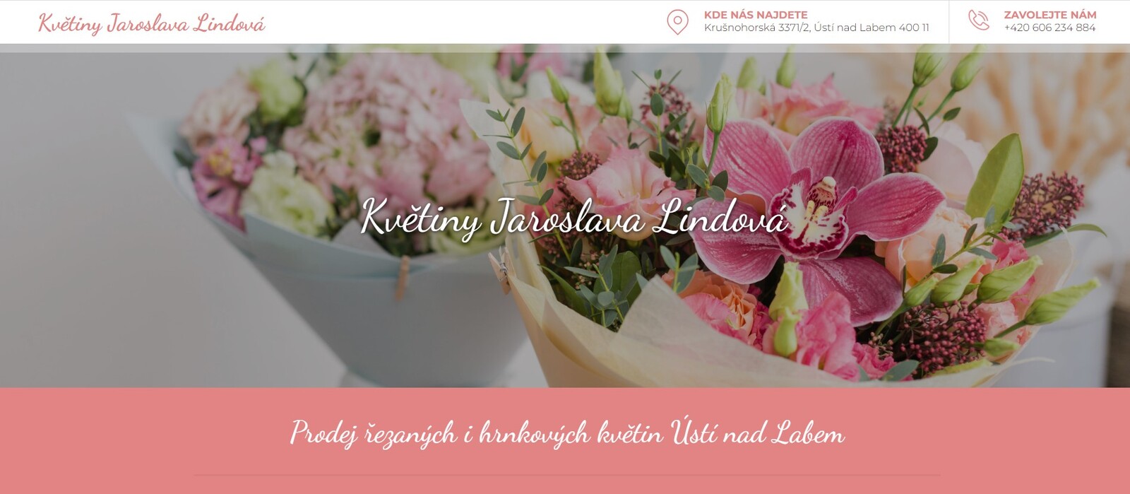 Květiny Jaroslava Lindová z Ústí nad Labem nabízí široký sortiment čerstvých řezaných i hrnkových květin, vhodných pro různé příležitosti – narozeniny, svátky, promoce a radostné události. Zajišťují krásné kytice, které potěší každou ženu a podtrhnou každou událost. Nabízí dárkové předměty, jako jsou svíčky a keramické výrobky. Pro svatby připraví květinovou vazbu pro nevěstu, maminky, svědkyně a výzdobu obřadu a svatební tabule. Specializují se také na smuteční a dušičkové vazby pro pohřby a vzpomínky na zesnulé.