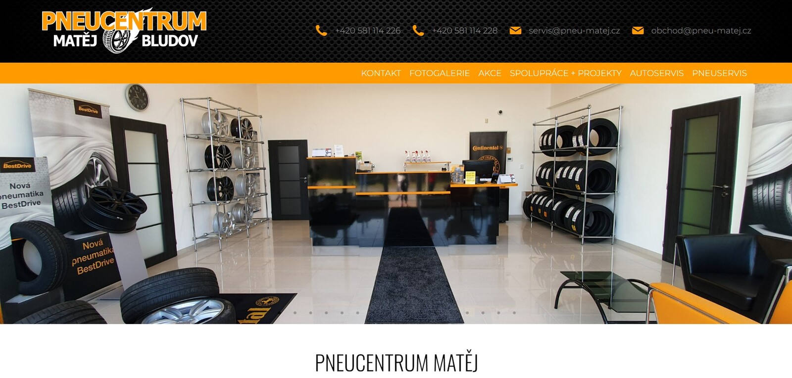 Společnost PNEUCENTRUM MATĚJ BLUDOV, s.r.o. je pneuservis a autoservis, ve kterém vám zajistí prodej a opravy pneumatik včetně kompletního servisu pro váš vůz. Společnost sídlí v Bludově.