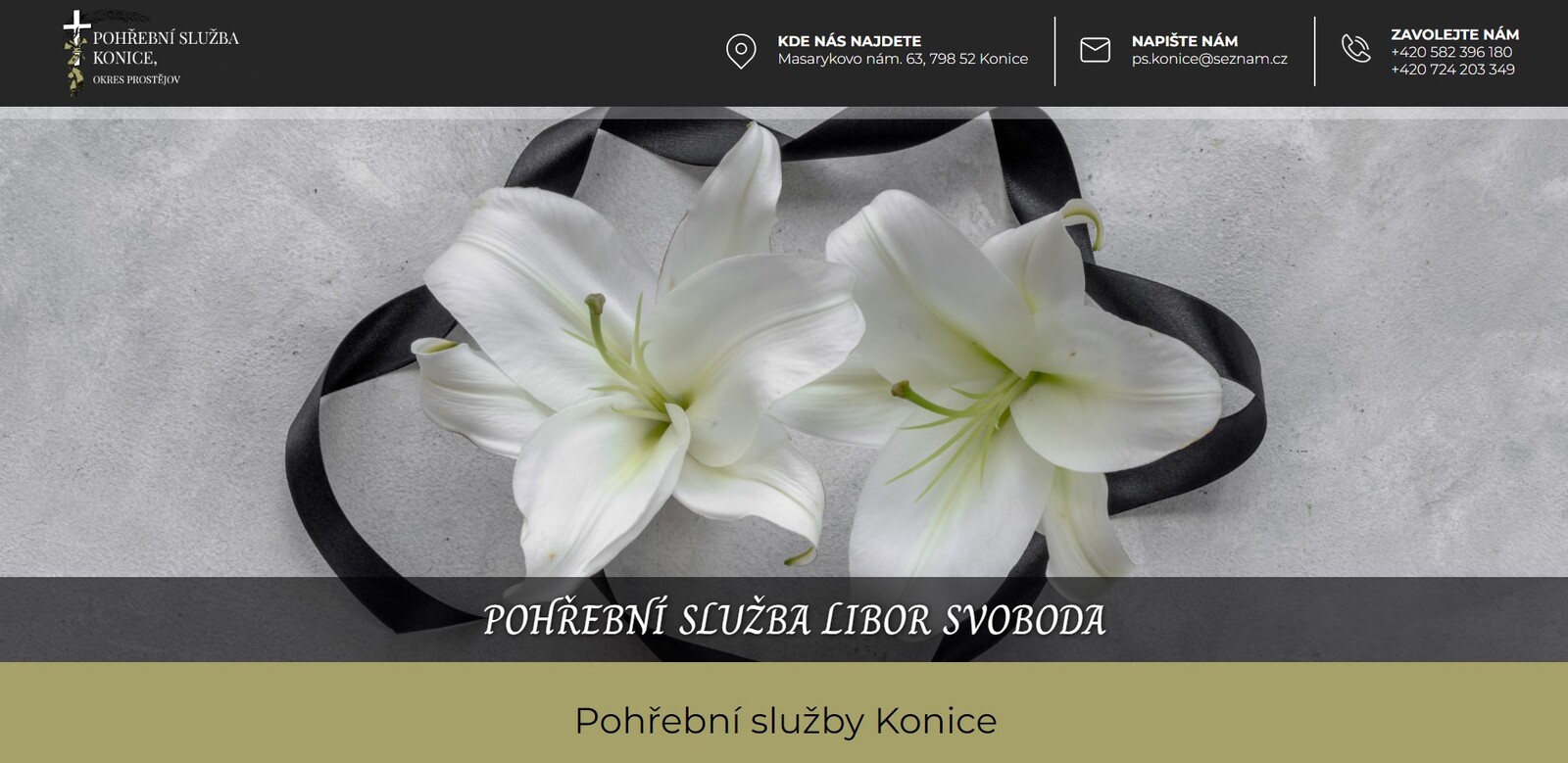 Fira Pohřební služby Konice vám pomůže se zajištěním pohřbu v situaci, kdy vás opustí vaše milovaná osoba. Zařídí komplexní pohřební služby, od převozu zesnulého k dispozici 24 hodin denně, až po vyřízení administrativy, tisk parte, zařízení posledního rozloučení a pohřbu.